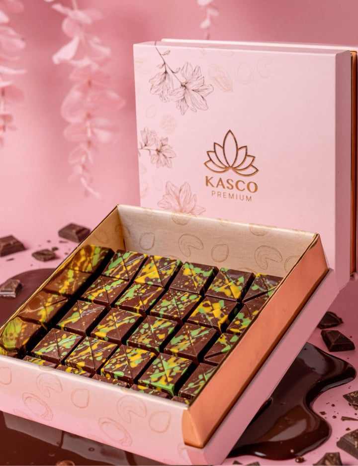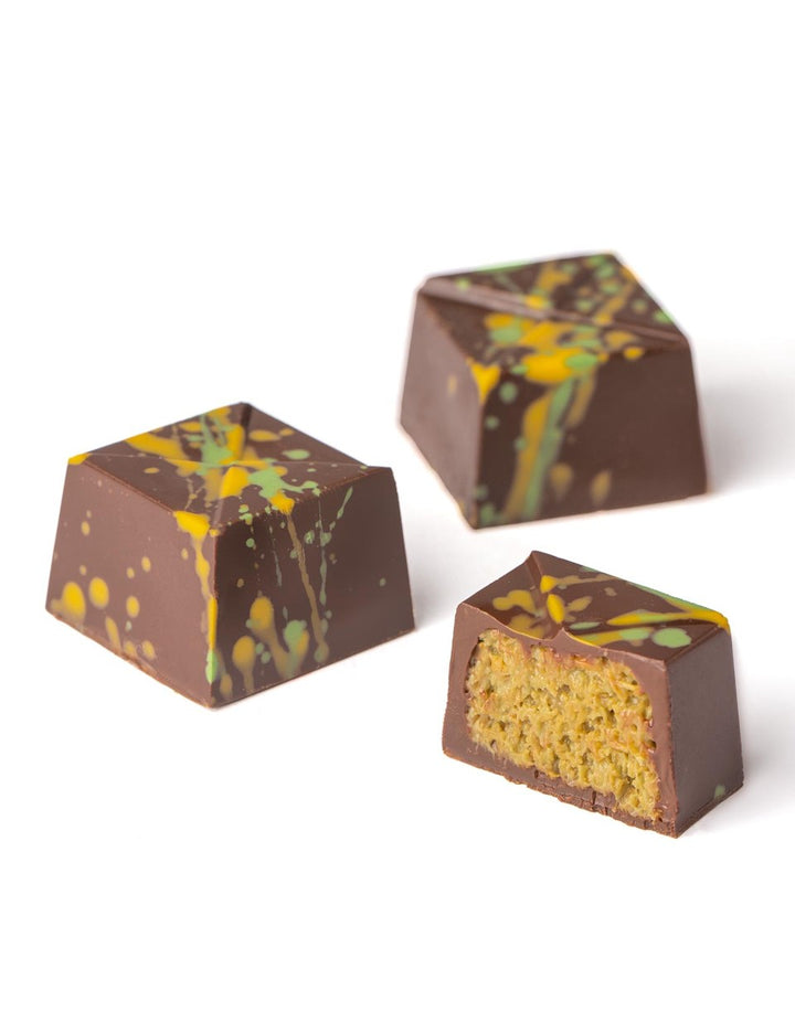 Kunafa Filling With Crushed Pistachio And Crunchy DARK Chocolate.