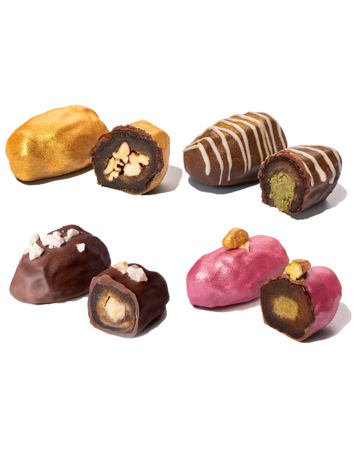 Nutella Hazelnut Date, Pistachio Pink Date, Coconut Filling Date, Dubai Chocolate Kunafa Date.